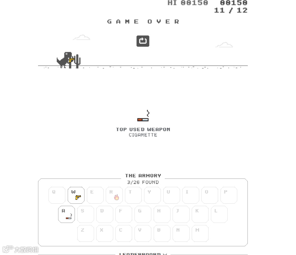 推荐语:谷歌小恐龙道具增强版,有多达二十几种道具,如火、剑、战斗机等,可以消灭障碍