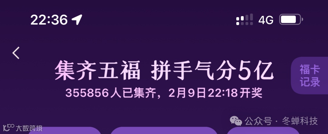 支付宝集五福开奖时间为2月9日22点18分【除夕夜】