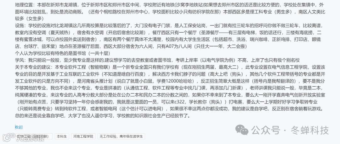 在框框大学网站中,你可以精准地查找专业、学校等相关建议,并根据学历和工作经验进行筛选。虽然功能简单,但每一条建议都来自热心前辈们的真心分享。对于即将毕业的高考生们来说,我强烈建议你们认真阅读并借鉴这些经验。它们将为你们未来的学业和职业生涯提供宝贵的指导。