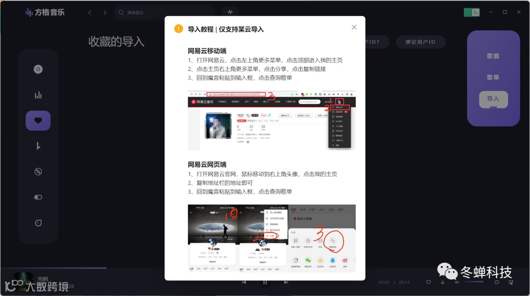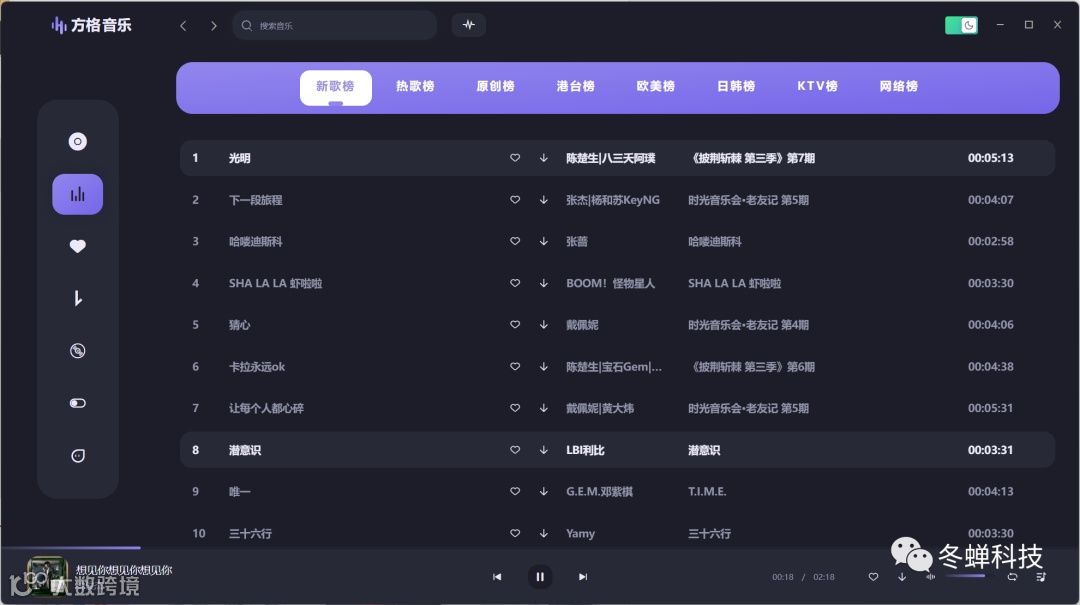 如有需要速领,资源失效请添加微信“dongchanguanfang”。今天给大家带来的软件资源是--方格音乐,方格音乐为广大用户带来了海量高品质的音乐。该软件包含了所有的音乐网站,聚合了各大音乐平台搜索,可以免费试听且下载全网付费歌曲和无损音乐(电脑桌面版支持下载,安卓目前有广告)。除此之外,还有韩国的 genie榜、 YouTube音频榜、日本歌曲榜、英国 UK榜等等,不管是什么风格的歌曲,各种榜单,歌单收藏,轻松满足你的音乐需求。如果受够了其他软件绑架可以来试试这款音乐软件~小编向各位推荐,本软件保证能让您满意!