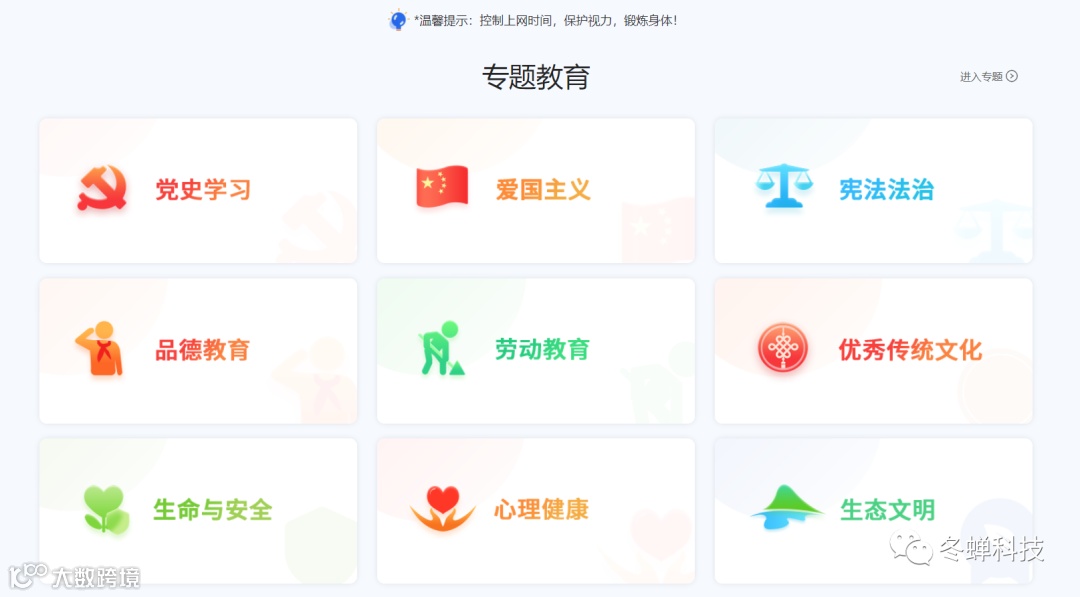 该网站里所有的教学内容全部免费,电子教材也可以无条件直接下载!网站分为:专题教育、课程教学、课后服务、教室研修、家庭教育、教改实践经验模块。专题教育这里可以进行党史学习,让孩子有正确的信仰,了解历史,了解咱们大中华优秀传统文化。
