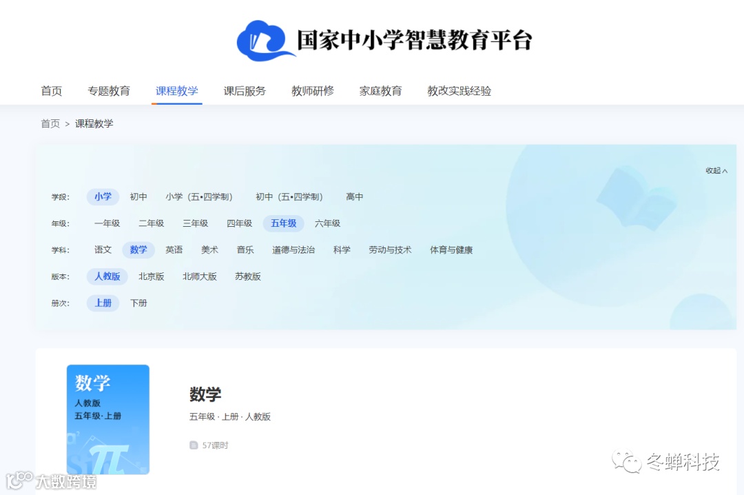 课程教学模块可以进行对课程的选择,小学、初中、高中!课程面面俱到,同时右下角还有 电子教材 模块 ,所有的教材都有电子版且支持免费下载!