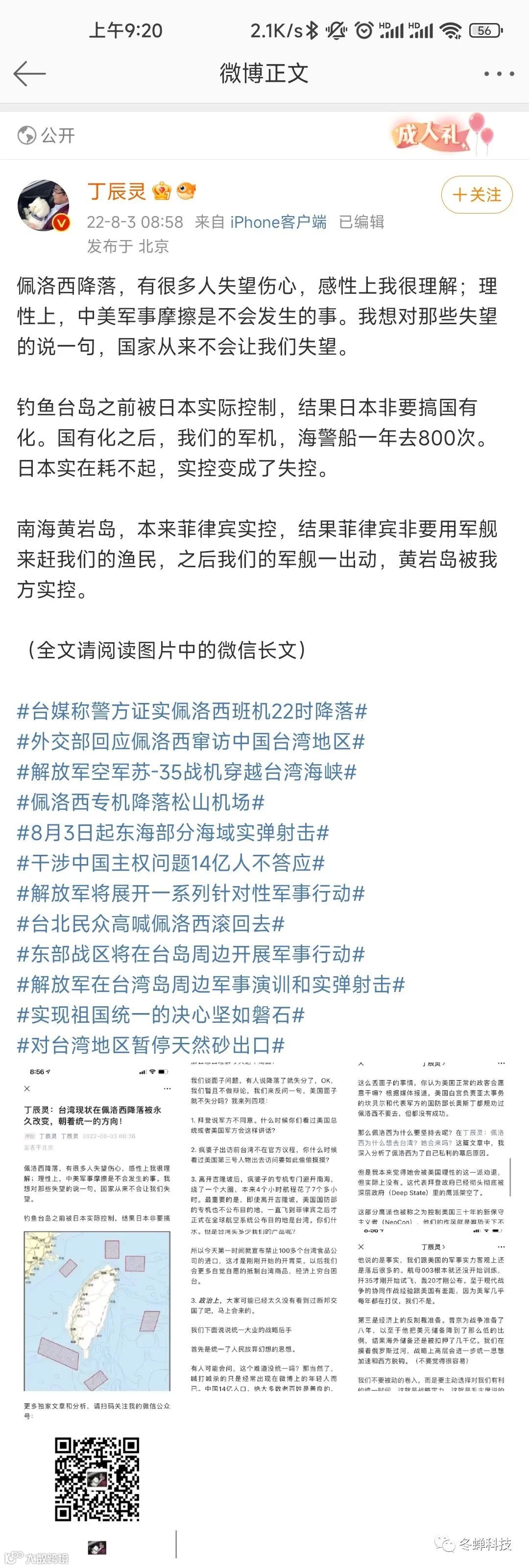 位卑未敢忘忧国,事定犹须待阖棺。相信大家都在关注佩洛西访台事件,昨天吃了一天的瓜,公众号都没有更新(最近事比较多可能停更一周,如有需求请联系公众号微信“dongchanguanfang”),结果老妖婆还是平稳落地了,刚开始是愤怒的,但是细想一下这就是一个诱饵,为什么要质疑国家的决策呢,心想为什么国家每次都是谴责谴责再谴责,为什么就不能真枪实弹干一次?看似很硬气很热血,可是真的和美国直接发生战争,你觉得我们会赢?佩洛西一窜访台湾你就直接把她打下来?相信决策层有他们更智慧的做法,不妨让子弹飞一会儿,看看国家在你看不见的地方都会做哪些实际行动吧,我们要按照自己的节奏来,而不是因为一个佩洛西就被动跟着老美的节奏。