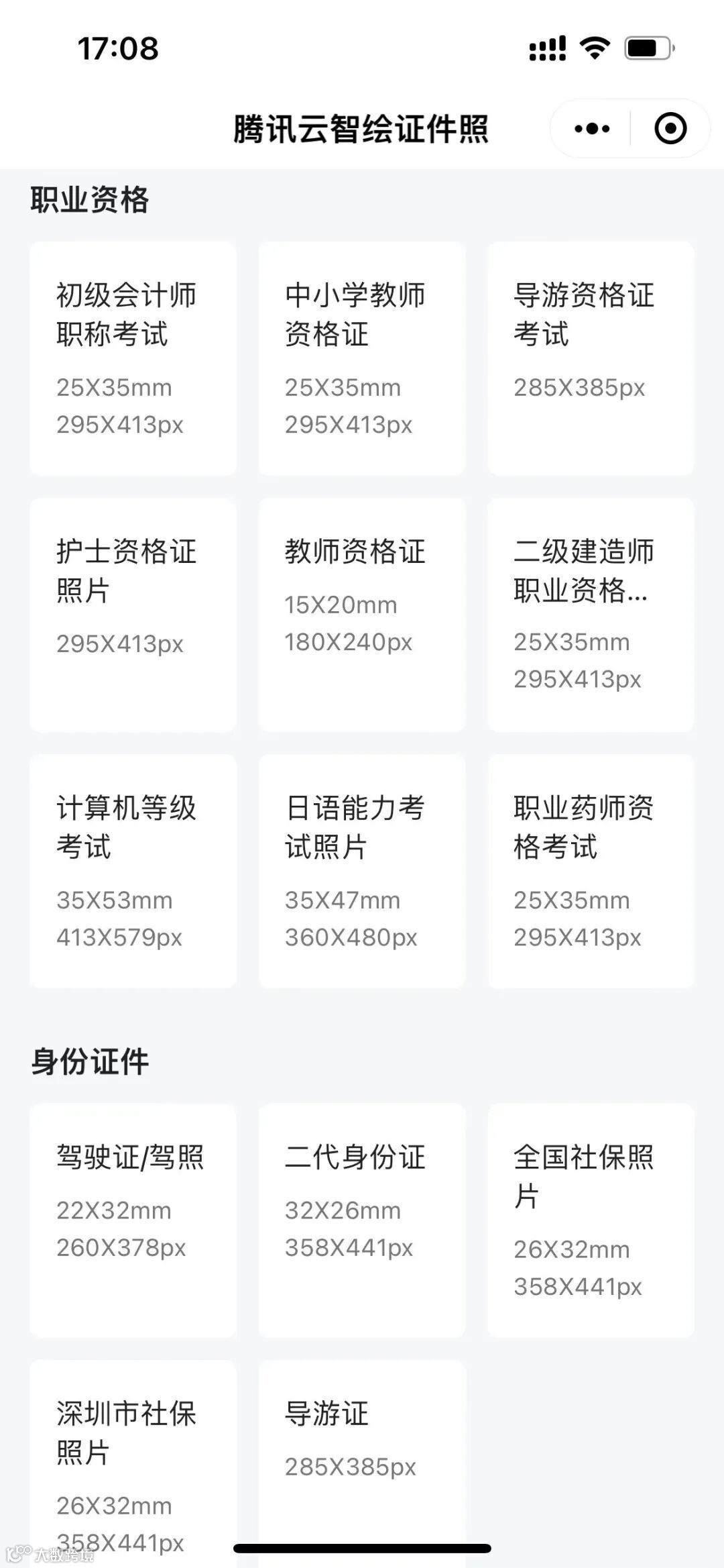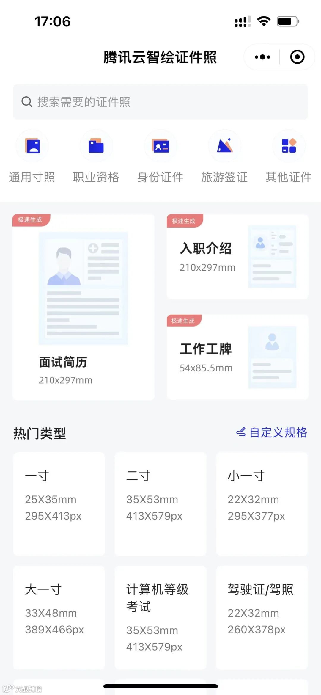 此小程序是腾讯官方出品,整体界面非常简洁。不仅有一寸照片还有各类证件照片。