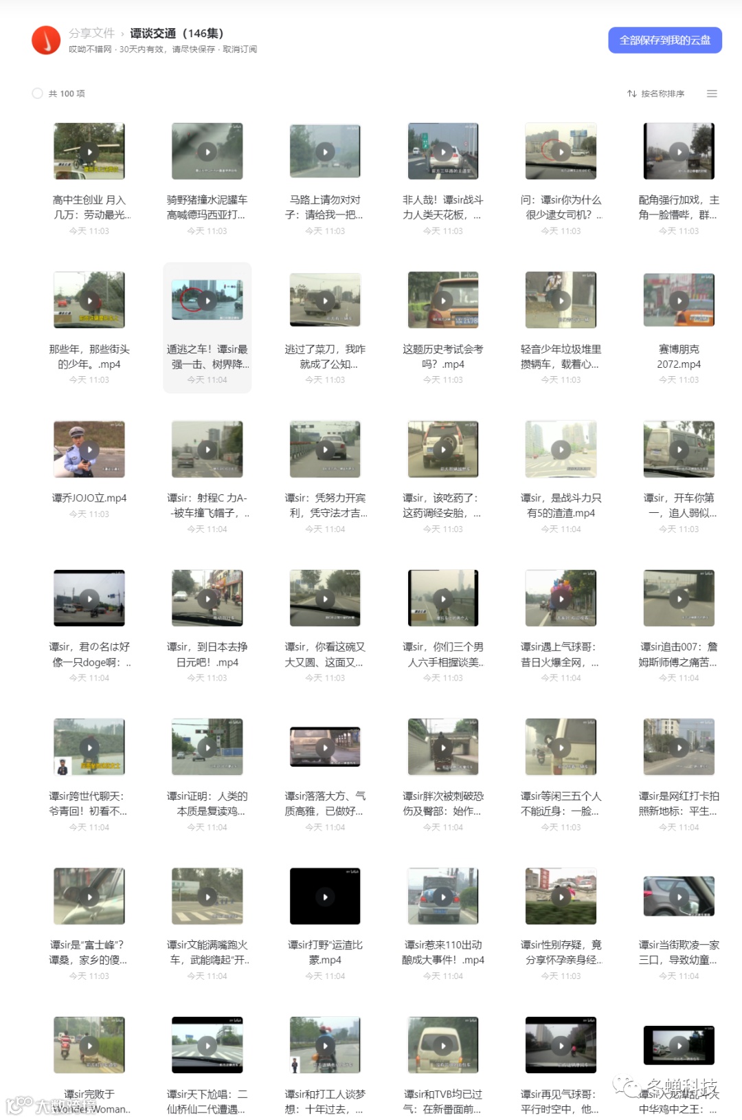无套路,回复关键词“220712”获取谭谈交通(共146 集)资源。阿里云网盘资源,下载不限速,如有需要速领,资源失效请添加微信“dongchanguanfang”