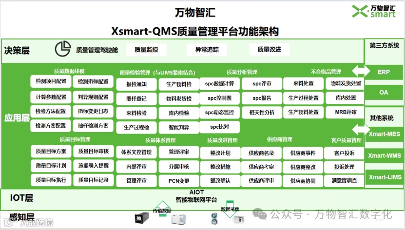 万物智汇(南京)科技有限公司是一家致力于为企业实现数字化转型的提供商。利用Xsmart算法平台、Xsmart智能工厂、Xsmart物联网平台,融合云计算、大数据、人工智能等多种技术,将生产运营各环节动态实时数据与外部供应链、客户数据有效整合,打破数据孤岛,提供从原料管控、过程管控、成品管控全生命周期解决方案,旨在建立质量全流程追溯体系,增强数字化生存发展能力,实现产业链协同发展。