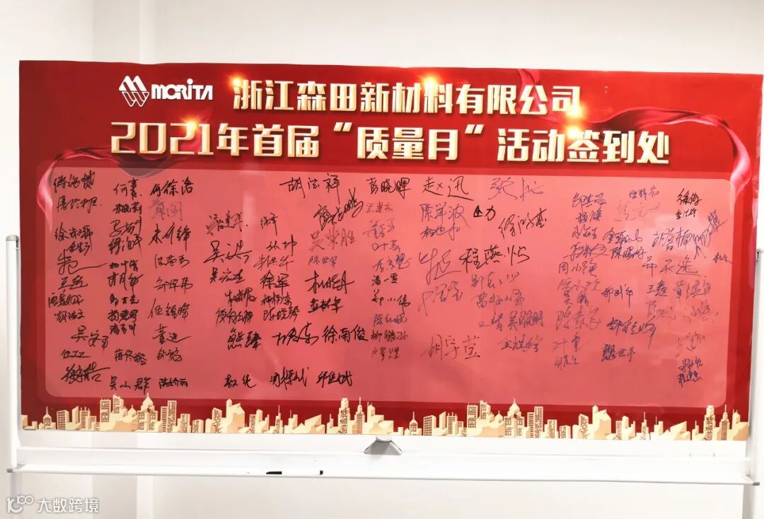 最后,公司全体员工依次在活动签到处签下自己的名字。浙江森田新材料有限公司第一届“质量月”活动正式拉开序幕。