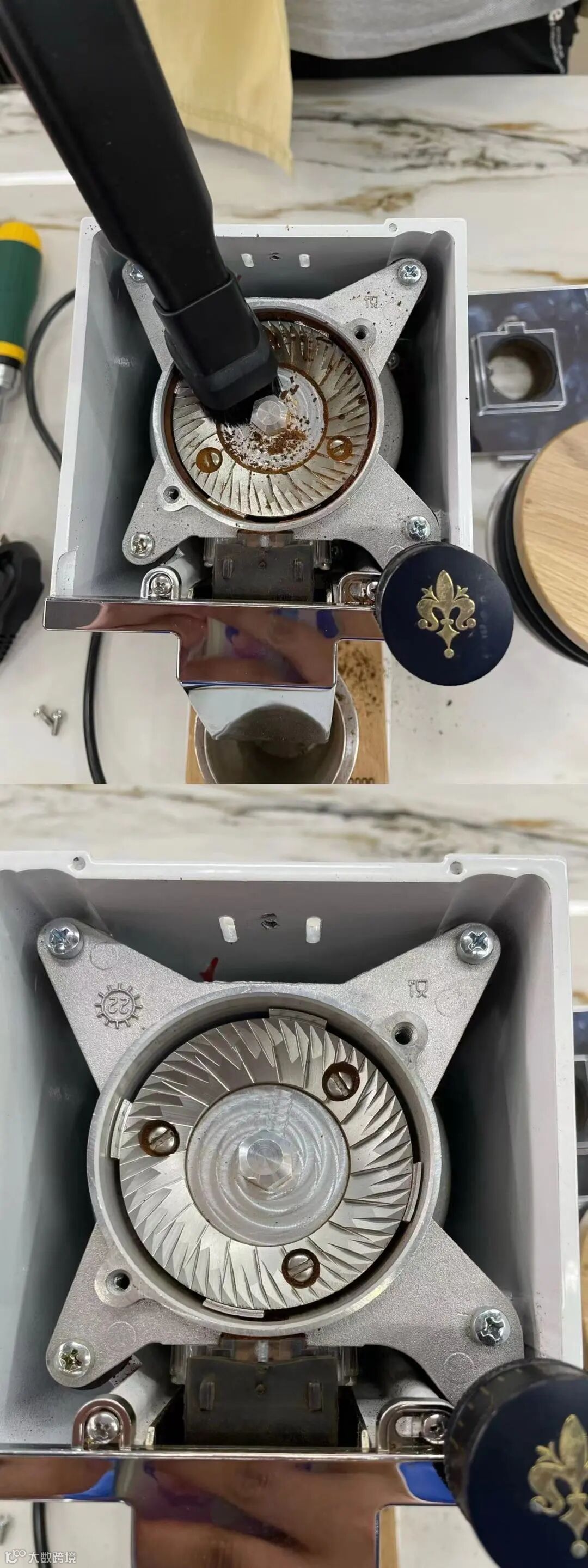 所以定期清洁磨豆机是十分有必要的,通过定期维护磨盘和清洁磨豆机,可以让磨豆机更好的使用以及提升出品。