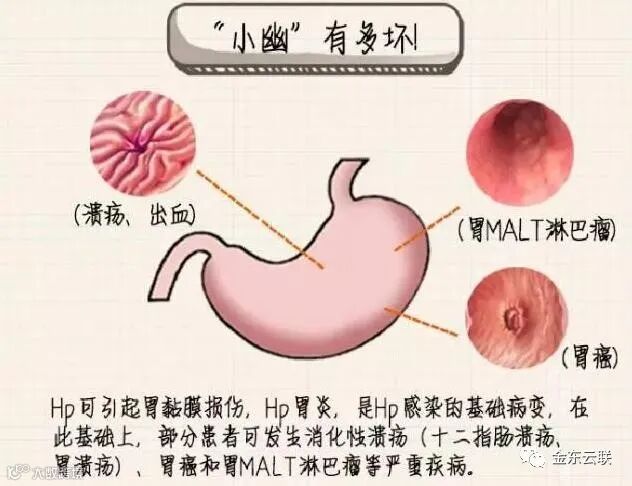 幽门螺旋杆菌定殖在宿主的胃黏膜中,会通过不同的机制引起胃黏膜的损伤,也是慢性胃炎、消化道溃疡主要的致病因素,与胃癌、胃黏膜相关组织淋巴瘤的发生具有一定的相关性。