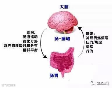胃肠道分泌的几十种激素细胞广泛分布于胃肠道壁,参与不同功能的调节, 多巴胺、五羟色胺这两种调节情绪的物质在大脑中也存在, 95%的五羟色胺在肠道里合成。所以情绪的很大一部分受肠道神经系统影响。