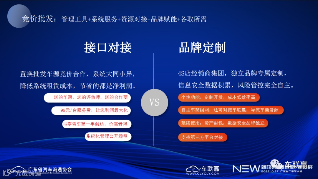 ▲资料图片:2022年10月27日,2022广东省二手车大会上,深圳车联赢科技肖总的主题演讲:4S店经销商集团二手车的合作方案。