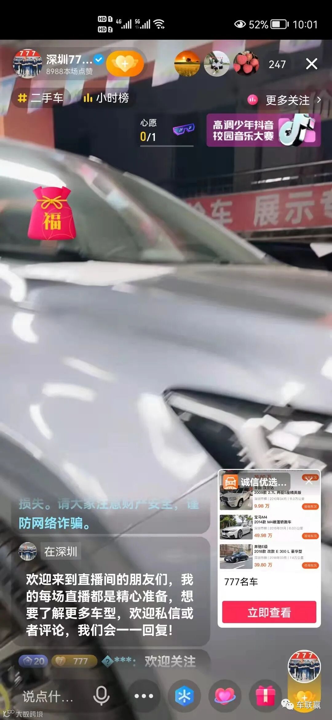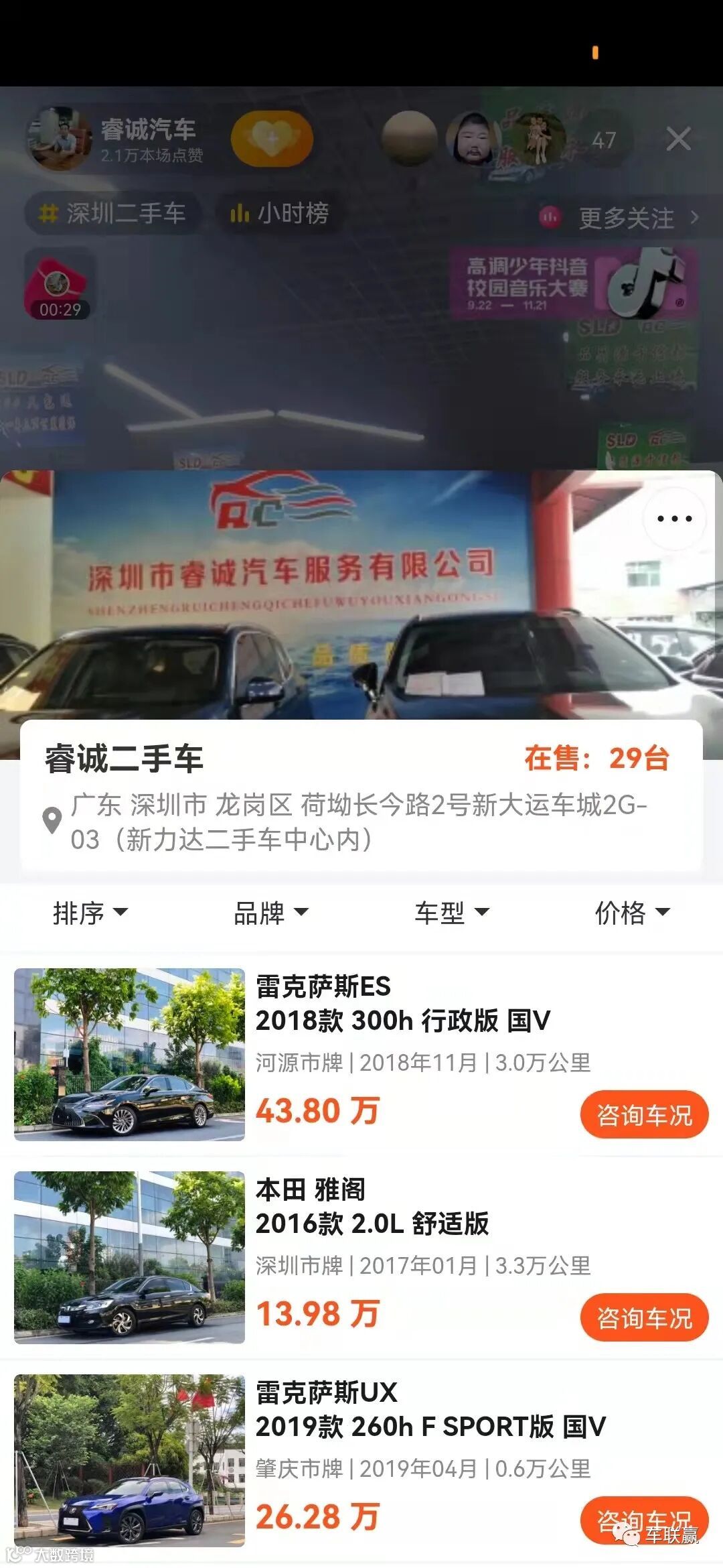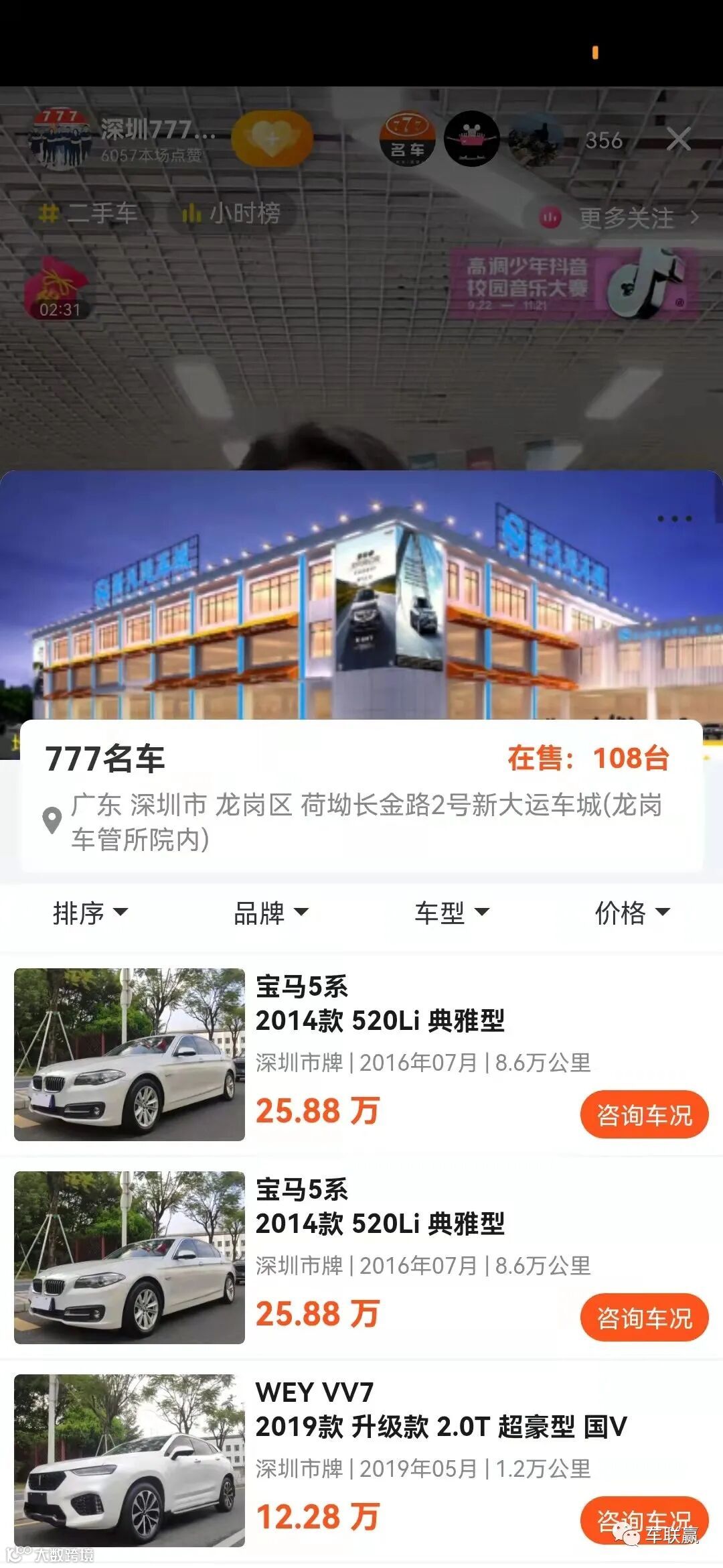 新大运市场头部网红:深圳777二手车,月成交60+起