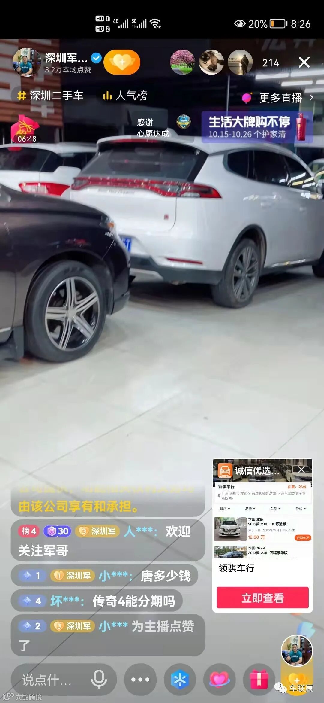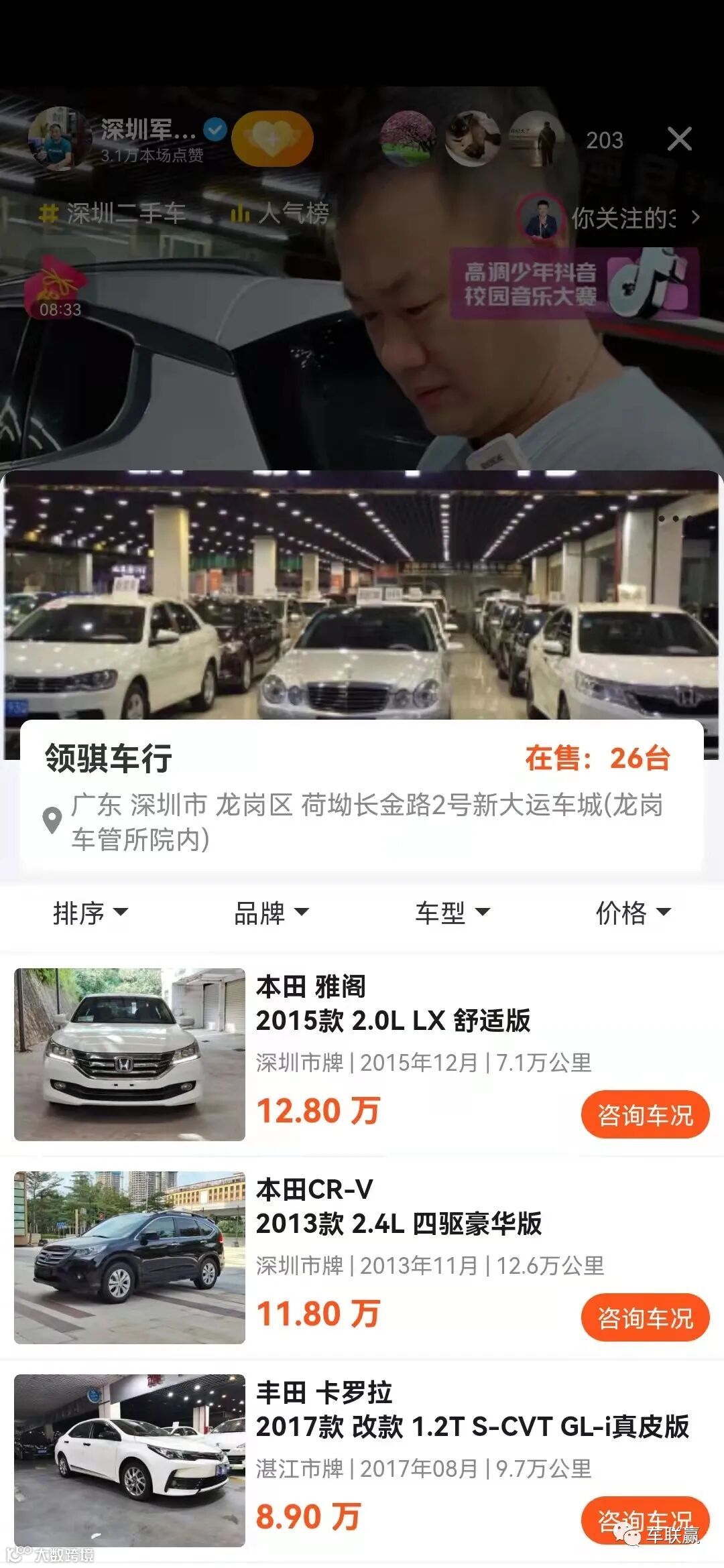 新大运市场头部网红:深圳军哥二手车,月成交50+起