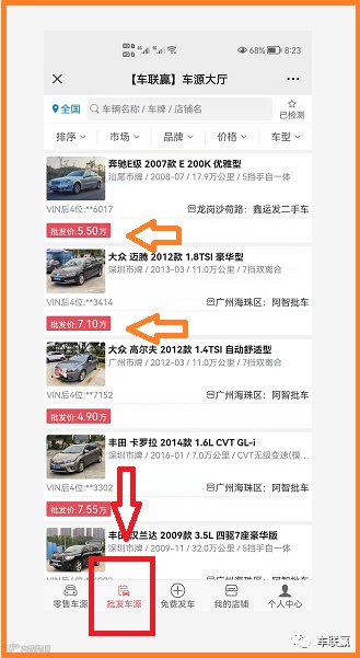 1:如何查看:登录后底部菜单点击批发车源即可