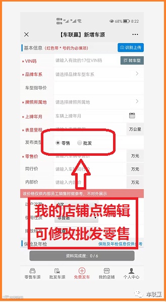 3)已发布零售车源,微店点击编辑即可修改到批发;