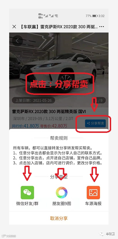 第二步:任意车辆蓝色帮卖按钮,都可一键下图片转发