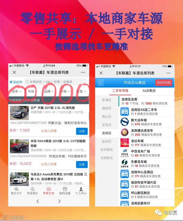 车联赢平台面向所有二手车商,同行,经纪人,汽车行业从业人员,免费开放,登陆免费,操作简单,使用方便,资源共享,合作共赢!