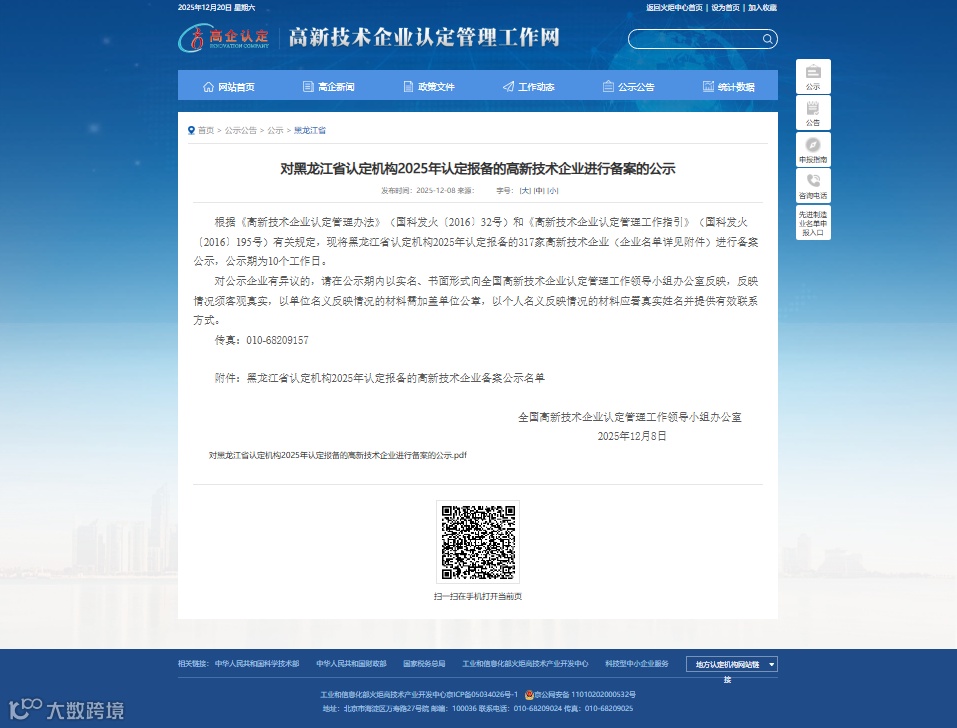 近日,根据全国高新技术企业认定管理工作领导小组办公室的备案公示,中科优术(黑龙江)科技产业有限公司凭借扎实的科研实力、持续的创新投入与规范的体系管理,顺利通过认定机构的严格评审,成功获得“高新技术企业”认定。