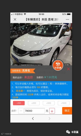 请参与竞价车商人员及车源发布单位认真,仔细阅读了解,车联赢平台竞价规则,您在线发布车辆展示,缴存保证金参与竞价,即代表默认遵守本协议规定。