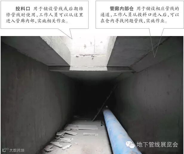 所谓地下综合管廊,其实和城市里的地下通道非常类似。不同的是,通道走的是人,综合管廊通过的是各类管线。当然,出于封闭考虑,综合管廊不会有地下通道宽敞的入口,取而代之的是一个个凸起于地面的探孔,便于人和材料进入管廊内部。