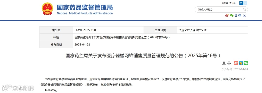 医疗器械网络销售质量管理规范