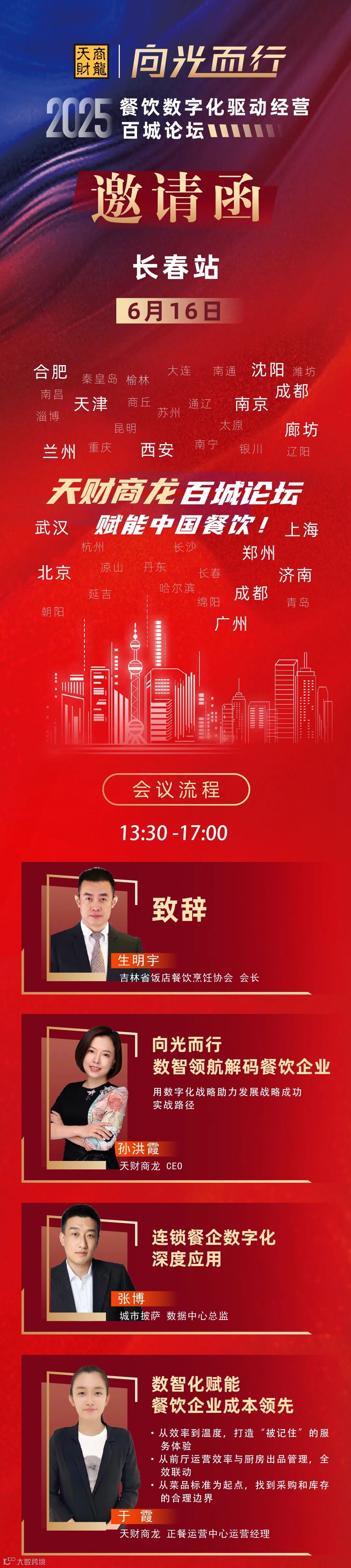 长春站 限时抢位!天财商龙2025向光而行百城论坛报名开启! 天财商龙智慧餐饮