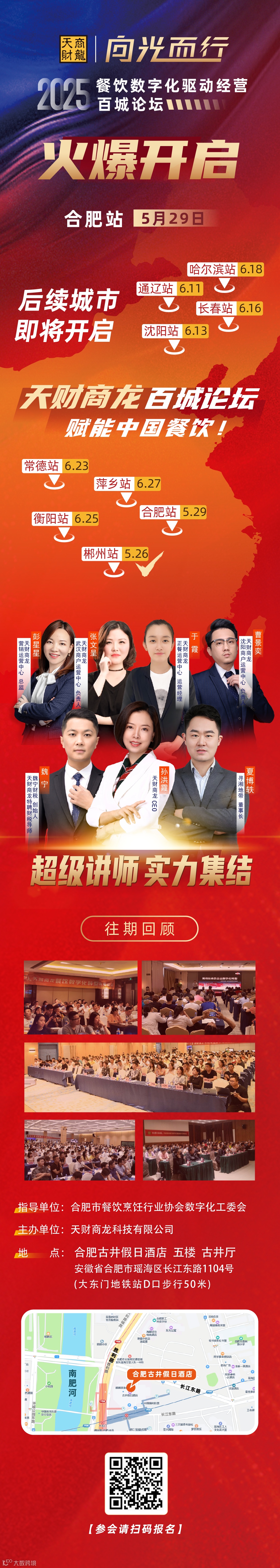 合肥站 限时抢位!天财商龙2025向光而行百城论坛报名开启! 天财商龙智慧餐饮