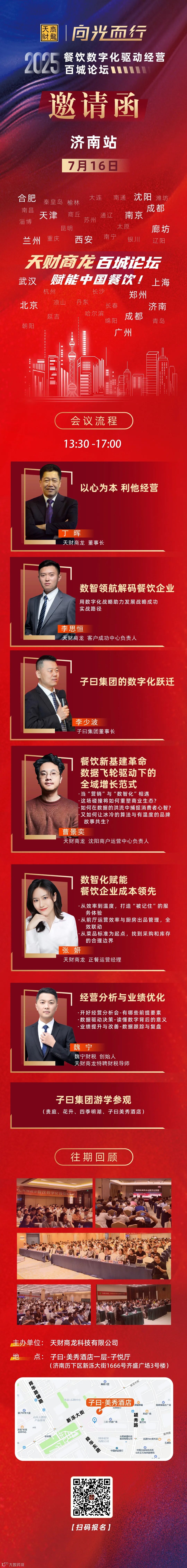而正在全国火热进行中的天财商龙2025百城论坛,将深度拆解数字化场景,为行业提供从方法论到工具的全链路解决方案,为餐饮经营指明未来航向,引领行业扬帆远航!