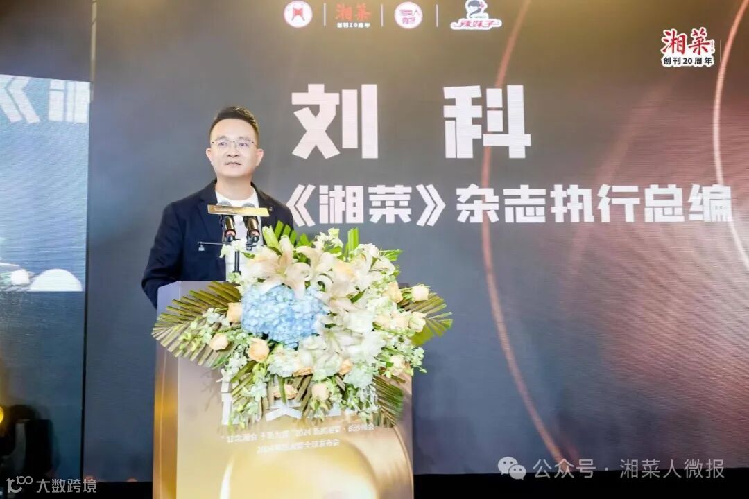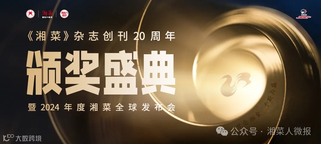 《湘菜》杂志创刊20周年之际,为检阅湘菜行业20年来的发展成果,探讨新质湘菜的发展趋势和未来方向,2024年11月20日,由世界中餐业联合会、湖南省商务厅指导,湖南省餐饮行业协会、《湘菜》杂志主办,湖南省14个市州餐饮行业协会、北京湘菜协会、上海湘菜协会、广东湘菜专委会、深圳湘菜专委会协办,首席战略合作伙伴辣妹子食品股份有限公司、李自健美术馆、李锦记、合味贸易、汉邦厨、世林食品支持的《湘菜》杂志创刊20周年颁奖盛典暨2024年度湘菜全球发布会在长沙举办。