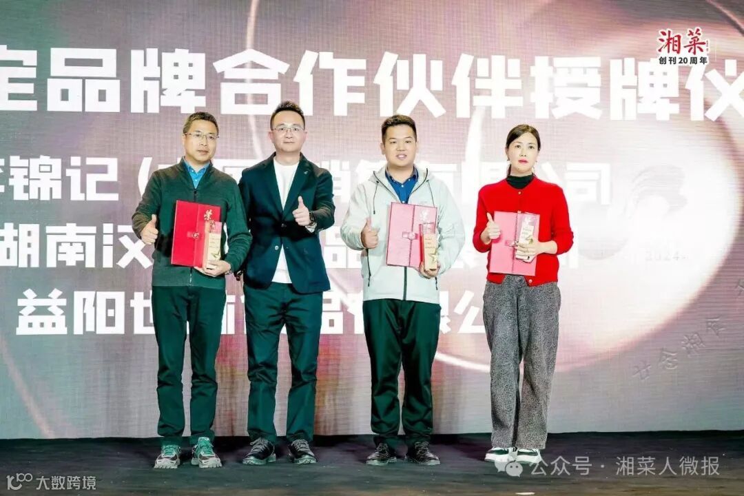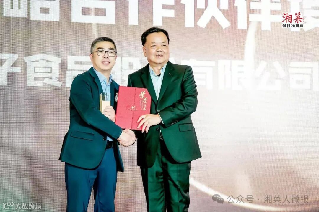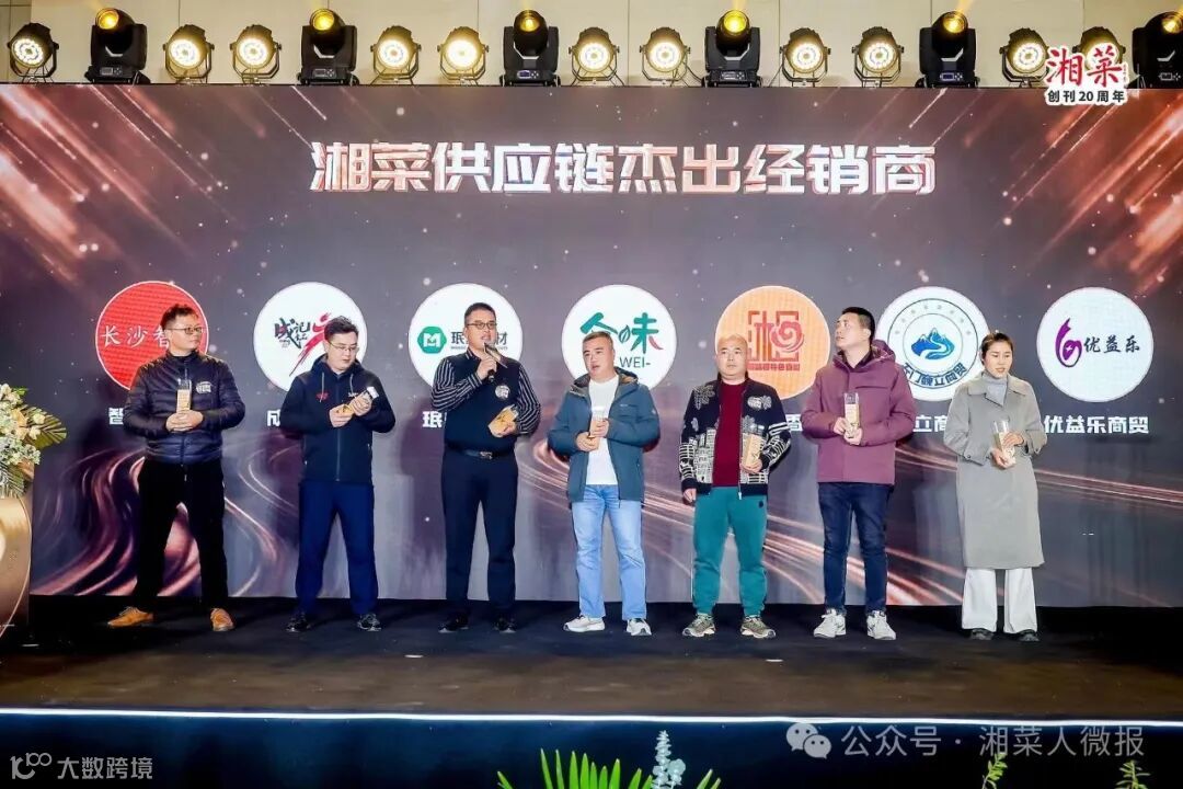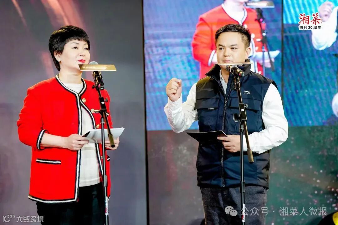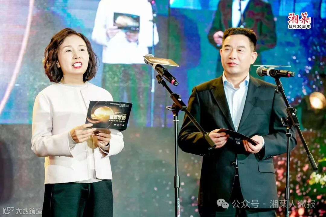 湘阁里辣品牌创始人邵跃明、费大厨品牌创始人费良慧为7位“湘菜供应链杰出经销商”开奖。