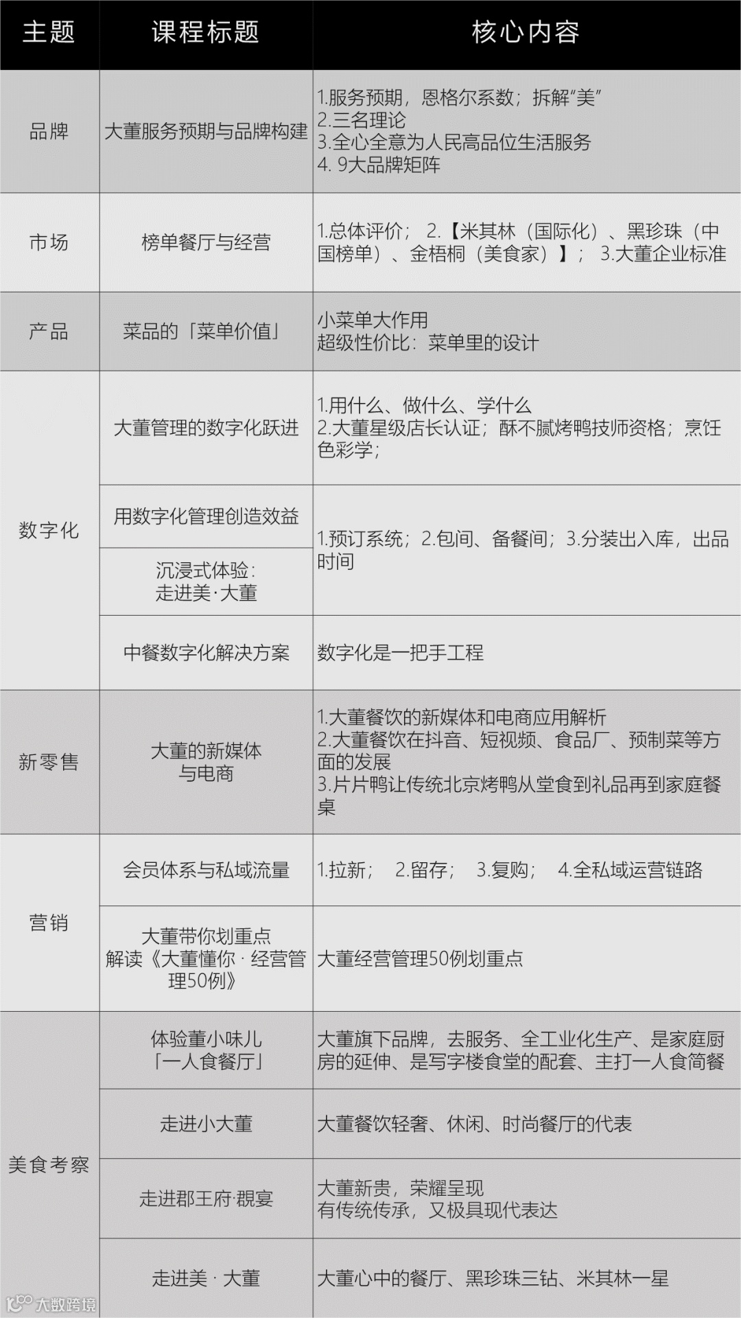 亮点2:实战实用——大董内部管理课程
