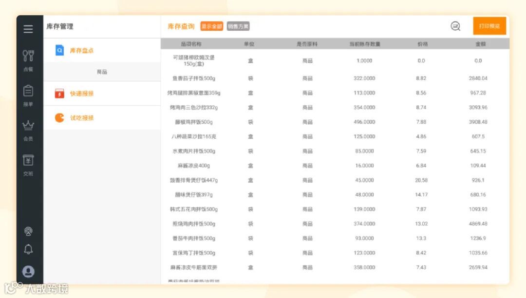 天财商龙餐饮·零售系统,实现收银POS端与供应链系统数据打通,门店可以快捷操作商品报损、采购申请、库存管理等业务,大幅简化门店人员的管理步骤,降低餐饮企业的人员培训成本。