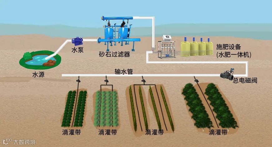 智能水肥一体机:这是整个系统的“大脑”,集成施肥、过滤、泵站控制等功能,可根据预设参数自动配比水肥,并通过物联网技术实现远程控制。
