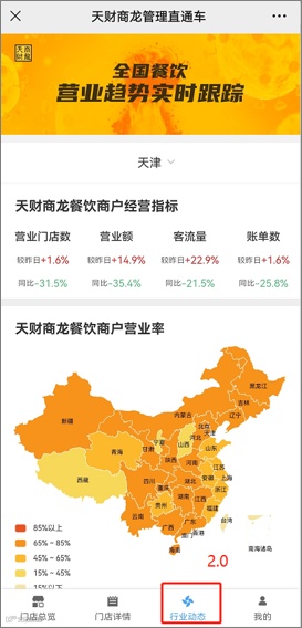 餐饮老板不仅仅关心自己门店营业情况,也时刻关注整个行业的动态数据,既可以查看全部的餐饮门店经营概况,也可以有选择性的查看具体区域、省份的餐饮行业营业情况,以便于了解全国的餐饮动态。