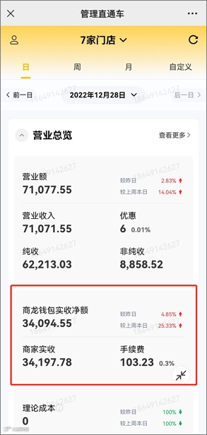 老板们希望可以在直通车上看到商龙钱包的数据,包括商家实收、手续费、实收净额,可以直观的看到真实的入账金额。