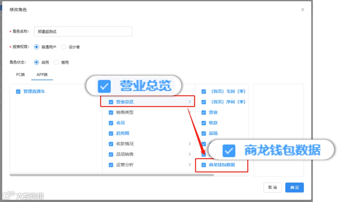 商龙云中设置可查看权限后,直通车的营业总览首页中展示金额。