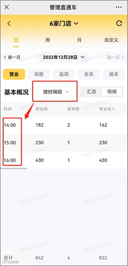 总览中的营业数据明细可以按照时间段和门店进行查询,门店经营过程中有一些时段是没有经营数据的,所以本期进行优化仅展示有数据的时段,并且集团维度查询数据时默认按照门店查询。