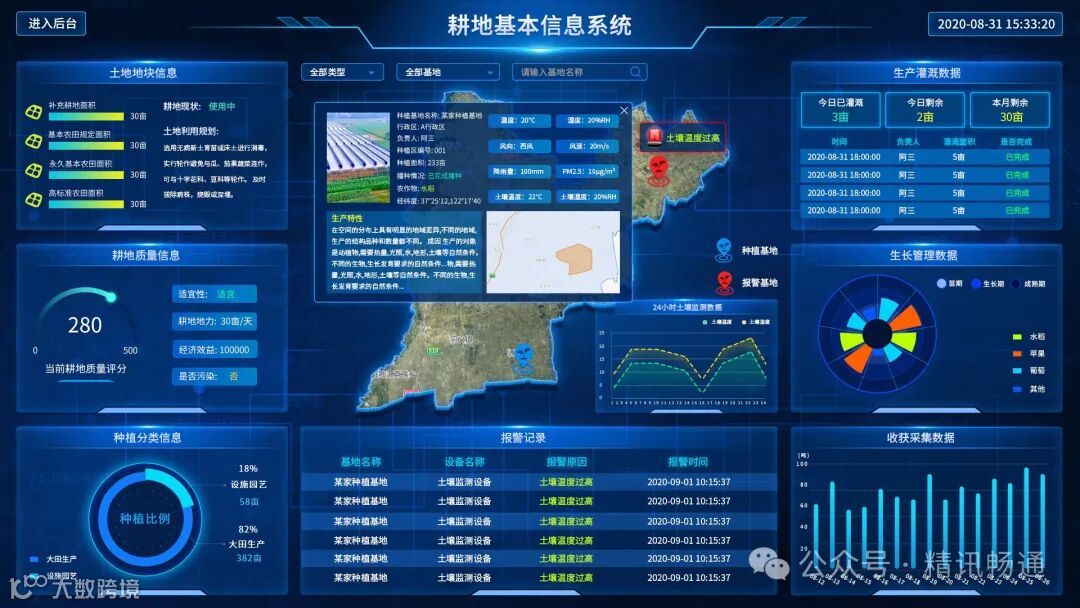 精讯畅通的智慧农业云平台,可以将气象、病虫害、农田环境等数据进行集中管理和分析。