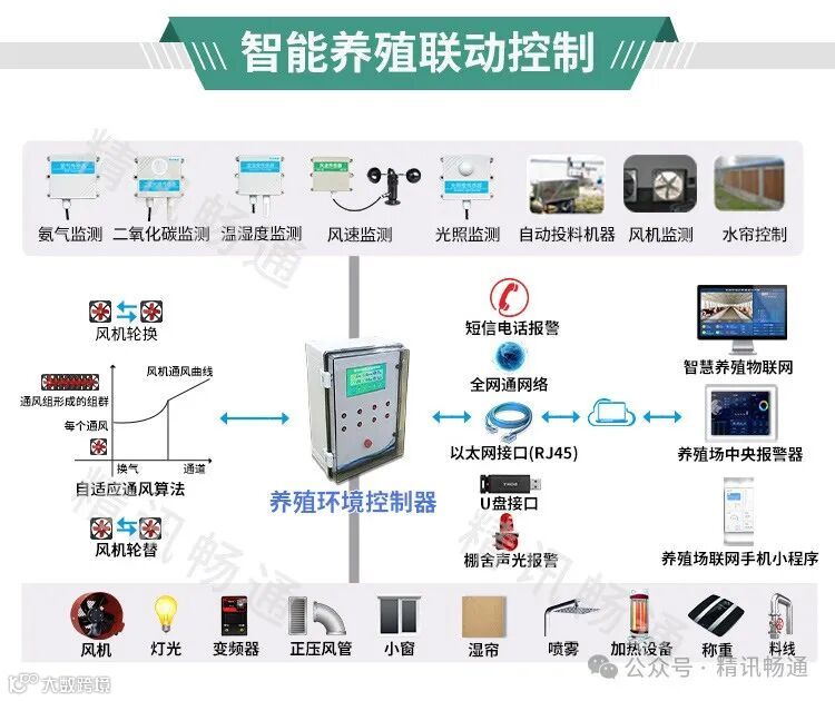 环境智能监控与调节: 实时监测养殖场内的温湿度、氨气、硫化氢等环境参数,并自动调节通风、降温、加温等设备,为动物提供健康的生长环境。