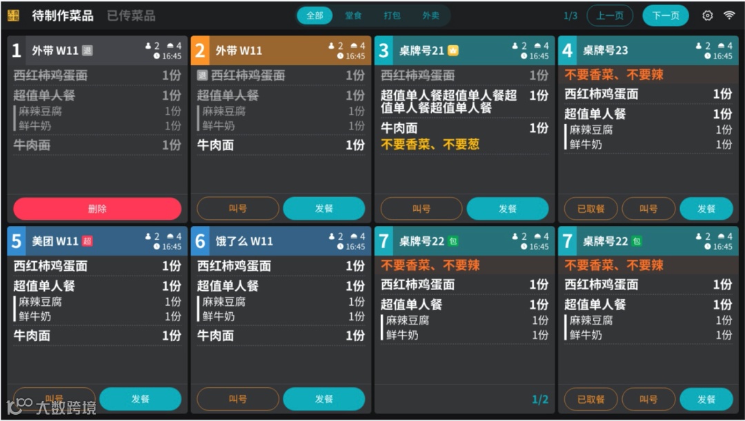 有智能厨房管理、且门店面积不大的门店,只需要一台KDS即可完成厨房出餐、叫号、语音报读的功能,减少门店经营成本