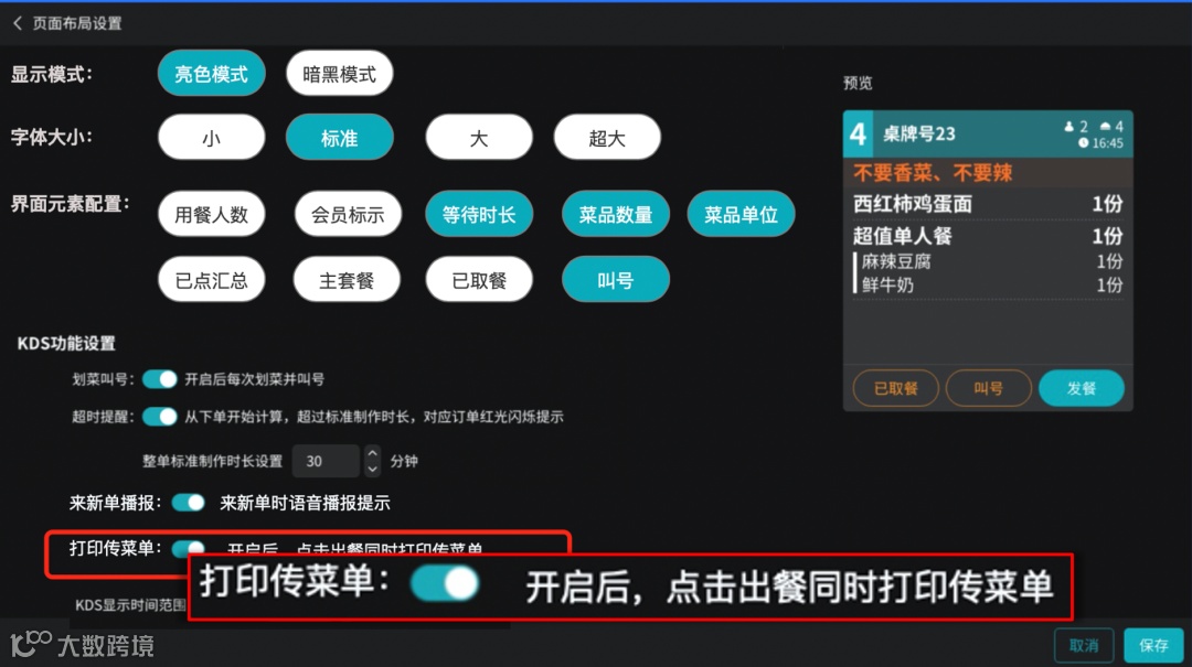 3.KDS支持打印传菜单(版本V7.6.1.7)