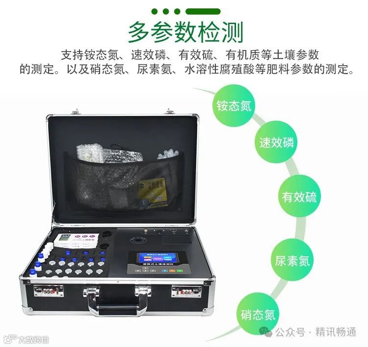 土壤养分速测仪涵盖土壤氮磷钾、PH值、有机质、盐分、微量元素、重金属、作物营养等监测项目,支持铵态氮、速效磷、有效硫、有机质、硝态氮、尿素氨、水溶性腐殖酸等参数的测定。