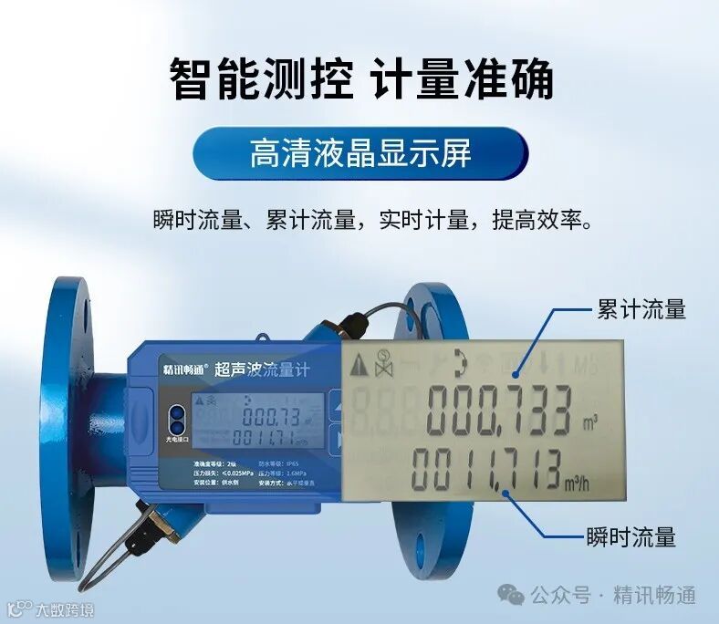 高清液晶显示屏,同时显示瞬时流量、累计流量,实时计量,提高效率。