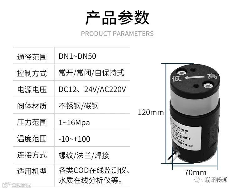 精讯畅通推出的这款高压电磁阀新品是针对高水压供水场景专门设计的管道电磁阀产品,耐腐蚀性好,使用寿命长,密封程度高,可承受1500KPa的工作水压,满足多种高压水使用需求。