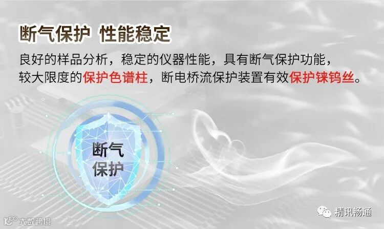 2. 断气保护,性能稳定。良好的样品分析,稳定的仪器性能,具有断电保护功能。能够较大限度地保护色谱柱,断电桥流保护装置有效保护铼钨丝。