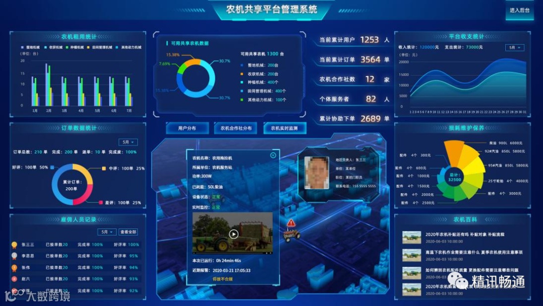 农机信息化管理平台旨在推进农业信息化,提高农业生产管理水平,保障农产品生产安全,实现农业生产工业化与机械化,提高土地利用率及单位产量,促农增收,并指导农民精耕细作以实现精准农业;用户可使用手机或电脑,登录云平台,查看农机状态、农机位置、农机维护情况、维护人员信息、作业项目信息、生产单位及区划统计,并进行农机调度、农作任务分配、农机租赁、农机预约、资质查询和补贴申请等操作;云平台可对农机信息进行实时更新,实现对注册农机租赁情况和维护情况的实时监控和清晰统计,并构建严密的设备运转考察与租赁情况,有效防止农机丢失和农机损坏情况发生,协助用户打造掌上云农业体系;此外,智慧农业在病虫害监测和育苗大棚建设方面,也能起到重要作用。