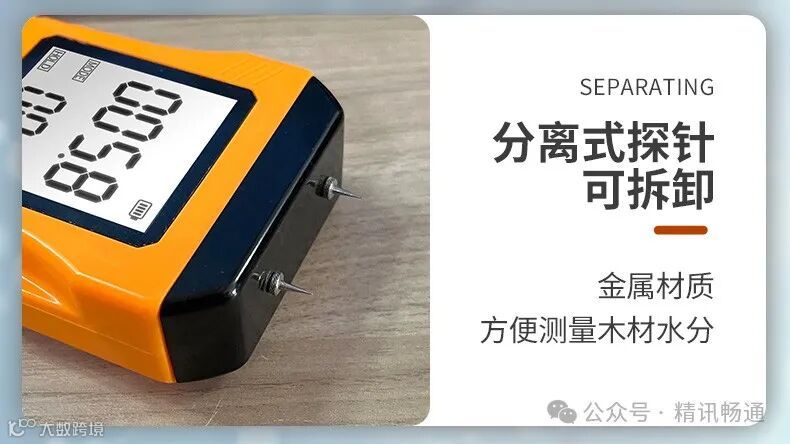 3.分离式探针,可拆卸。金属材质,方便测量木材水分。