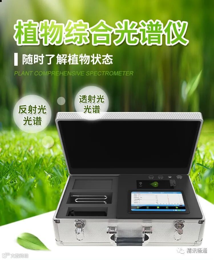 植物综合光谱分析仪是一套通过获取植物相关光谱信息,进而反演出各项植物指数的作物研究工具,可以非破坏性地测量叶片反射光光谱与透射光光谱,通过光谱结果可以对叶片内总叶绿素、叶绿素a或叶绿素b、水分、花青素、氮素营养等特征指数进行精确定性和定量。