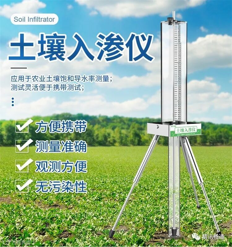 土壤入渗仪主要用于农业土壤饱和导水率测量,可以协助农业技术人员计算田间土壤的入渗速率,从而确定灌溉强度和灌溉速率,让农业灌溉在充分满足作物需水要求的同时,实现高效节水。土壤入渗仪由计量桶、密封塞、液位平衡杆、伸缩杆、入渗管等部件构成