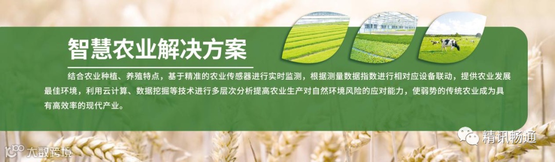 精讯畅通以广大第一产业从业者的需求为出发点,在生态场景的定制、设计、安装环节中做到极致,为用户提供细致入微的智慧农业服务,提高农业生产效率,优化农业生产过程中的劳动力分布结构,助力农业现代化和乡村振兴。
